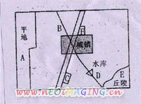 3.读下图,根据影响农业区位选择的自然和社会经济因素,在城镇周围将小麦、奶牛业、花卉、果树场、养鱼场、养鸡场各类农业类型合理安排到A、B、C、D、E、F各处,并说明理由;(6分)
