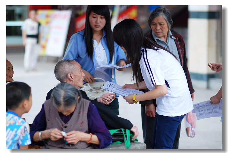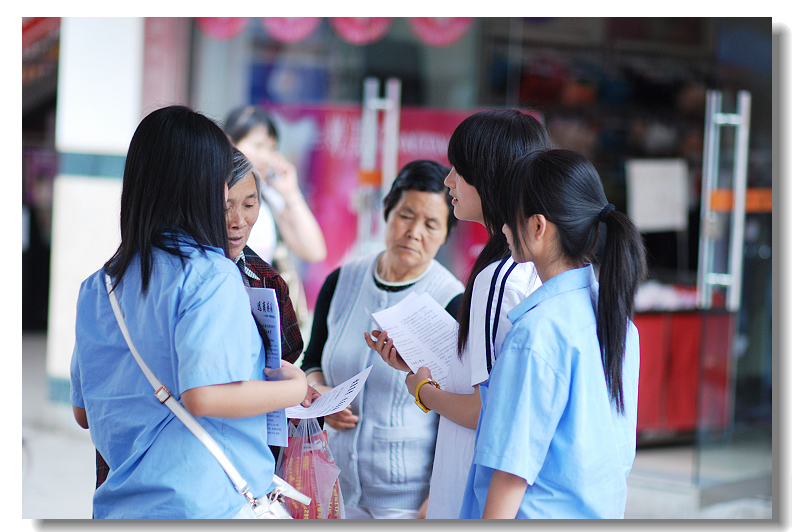 30多名志愿者分成3个小组,分别在县城春兰街、步行街、天梯三处开展活动,活动内容有:夏季疾病预防知识咨询,散发夏季疾病预防知识传单,免费发放疾病预防药物和降暑茶等。熙熙攘攘的人群中,有志愿者给老大娘讲解预防知识时的耐心;也有主动上前为行人发放预防药物时的贴心;还有坚持做好自己的工作持之以恒的恒心。在这个炎热的夏季,正是我们的志愿者为县城人民送去了一份清爽与关爱。