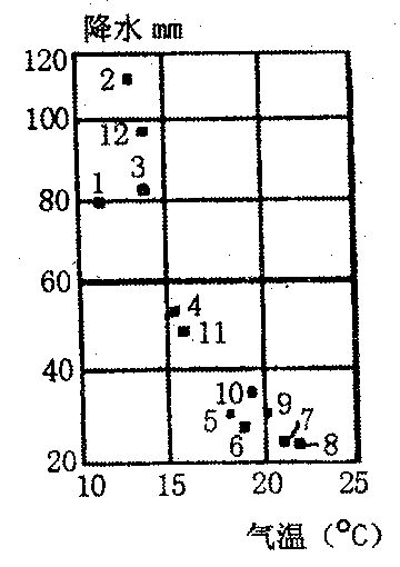 8、 气温降水要素点状图读右图回答: