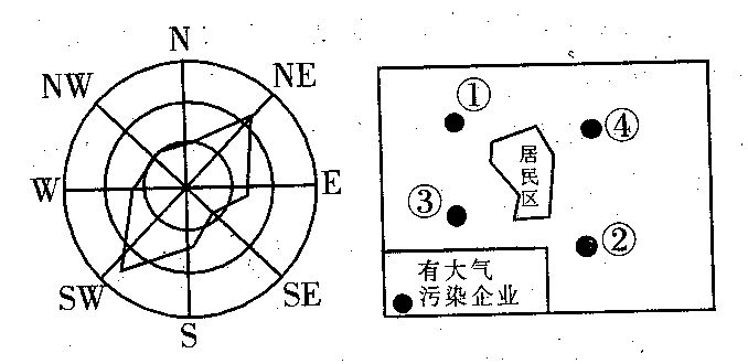 (3)该地大气污染严重的工厂应布局在城市的___________和_______方向的郊外。
