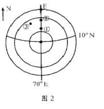 2.若①②两点经度相同,②③两点纬度相同,则此刻的太阳高度