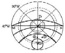 A.70°E,80°N B.70°E,80°N C.110°W,80°N D.110°W,80°S