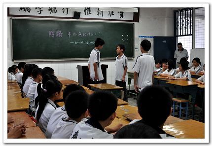 5月26日德育课,初一年级主任何山和初一班主任一行20余人观摩了初一、十六班主题班会“网络带给我们什么?”学生参与活动全过程,一改过去单纯教师说教,充分让学生认知事理;活动通过小品、辨论和歌舞等多种形式,寓教于乐,净化了学生心灵,并达成共识:健康上网,绿色上网,远离不良网吧,多读有益的书刊,育人效果良好。