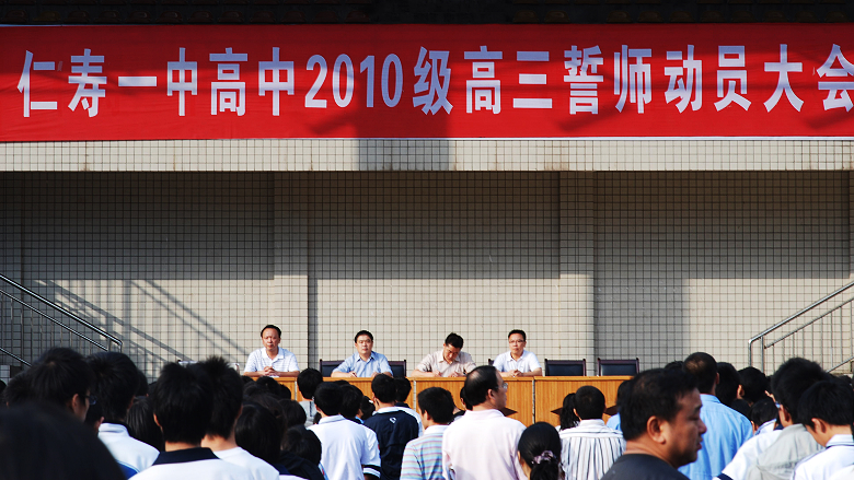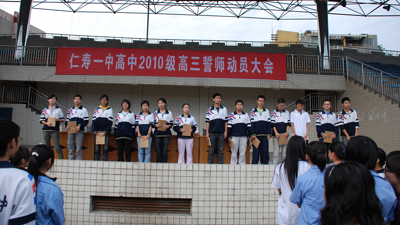 9月14日下午,仁寿一中高中2010级誓师动员大会在校体育场举行,全体高三师生参加了大会。会议由副校长杨建清主持。