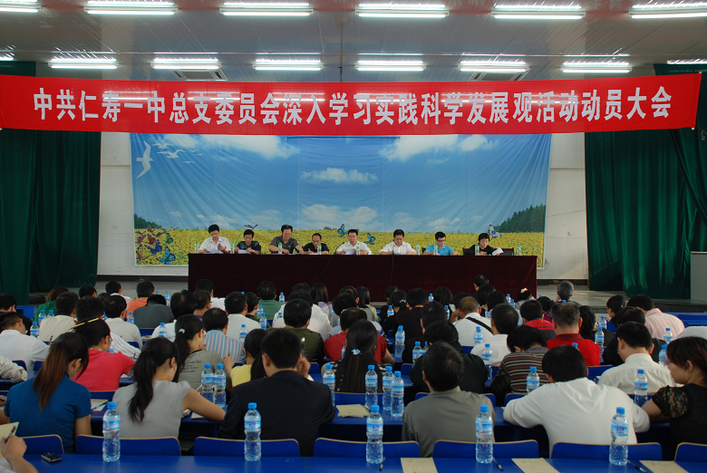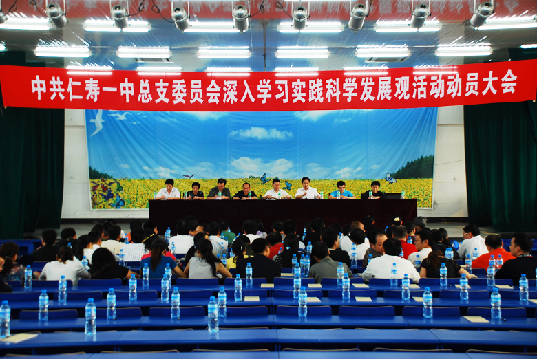 2009年9月28日下午,我校党委召开深入学习实践科学发展观活动动员大会,在仁寿一中鳌峰外国语学校学术厅举行,大会由党总支委员高世金同志主持,高世金同志首先向大家说明参加会议人员的构成,深入学习实践科学发展观活动是我校响应上一级党委的号召而开展的,也是我校党委结合我校实际,近期开展的重要活动。仁寿一中党总支委员会所属五个支部全体党员、(含预备党员)、以及2009-2010年重点培养对象和积极份子等参加了动员大会。于是今天正式启动了我校深入学习实践科学发展观的活动。