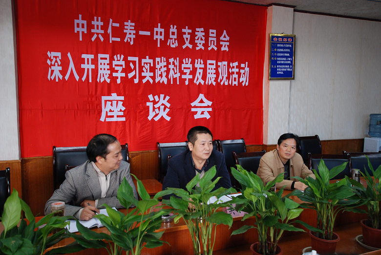 座谈会首先听取了仁寿一中党总支书记方良元关于仁寿一中开展学习实践科学发展观的主要做法和实践经验,同时听取了教育局党委书记辜学良对教育系统认真落实开展学习实践科学发展观活动的情况,最后县委书记李酌代表仁寿县县委结合仁寿教育、仁寿一中等简要汇报了对深入开展学习实践科学发展观活动的认识和建议。