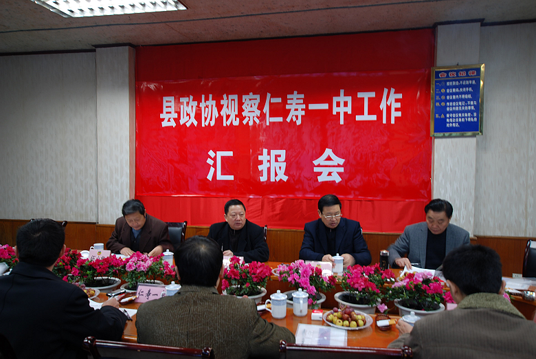 1月17日,四川省仁寿县政协常委在政协主席李德全的带领下,一行十余人到仁寿一中视察。首先深入到建设中的新校区,后回到学校走访了校园,在学校三楼会议室听取了仁寿一中校长方良元《以质量为保障 以创新求发展》的报告。