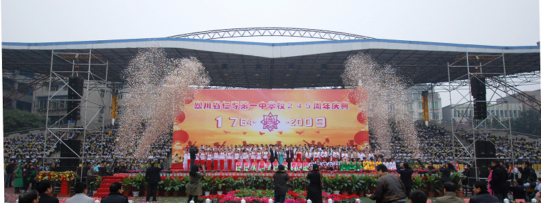12月31日,龙泉山下,彩旗飘飘,歌声嘹亮。两个多世纪风雨兼程、筚路蓝缕。两百多年来春华秋实、桃李芬芳的四川仁寿一中迎来了245华诞,来自省、市、县相关领导、嘉宾、校友及全校师生共万余人共贺。