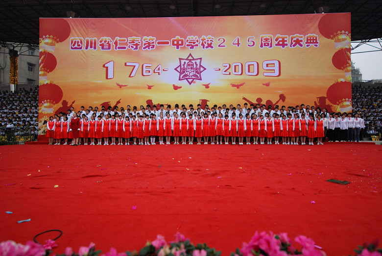 眉山市人民政府副市长杨玉仙在庆典讲话中充分肯定了仁寿一中所取得的骄人成绩,她说仁寿一中是全省一流的国家级示范性普通中学,眉山教育的一面旗帜;希望仁寿一中要以建校245周年校庆为新的起点,认真总结办学经验,全面提高办学质量,以发展为主题,以质量为根本,以创新为动力,进一步解放思想,更新教育观念,进一步巩固教育成果。