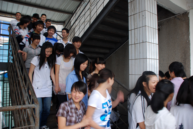 5月27日早晨8点正,呜——当一声警报响起,刚准备上课早课的仁寿一中学生猛然醒悟,学校地震演练开始了。早在星期一全校升旗仪式上学校就提出了本周将进行学校预防地震应急演练活动,今天终于拉响了警报,反应快的学生迅速的跑出了教室,反应慢点的学生也在霎啦间醒悟过来,开始随着人潮在教师的组织下以最快的速度下楼到操场集结…