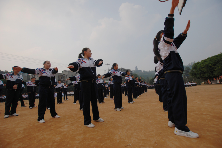 “舞动青春”这套广播体操具有鲜明的教育性、健身性、科学性、适应性、艺术性和新颖性。仁寿一中初中2013级全体学生精神饱满,认真投入,和着激扬的旋律,排着整齐的队伍进入了操场。在比赛过程中,同学们精神饱满,各具班级特色。整齐的踏步、摆臂、伸展、扩胸、跳跃、拍掌……动作节奏分明,展示了同学们健康向上的精神风貌和良好的班风。整齐的队伍,高昂的士气,赢得了评委老师和同学们的阵阵掌声。这次比赛,不但提高了学校广播操的整体动作质量,培养了学生的外在气质和内在作风,同时增强了班级的凝聚力,培养了同学们集体主义荣誉感、团结协作和拼搏进取的精神。