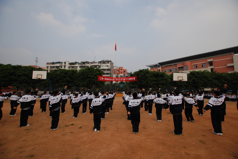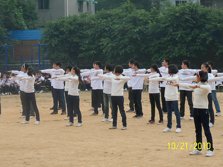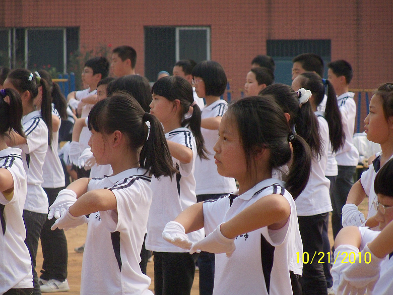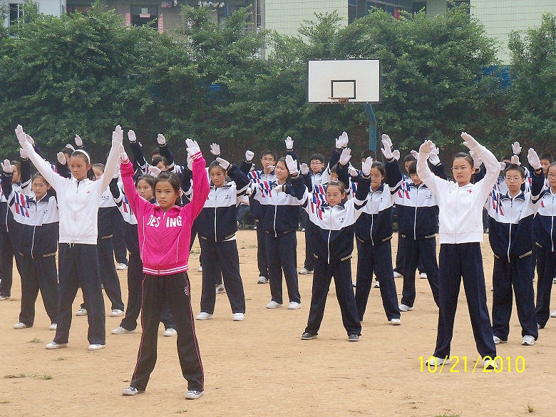 为全面提高我校广播操的整体水平,促进体育健身运动在学校深入开展,培养学生大方优雅的气质和健康挺拔的体态,让学生在运动中尽情地释放自己的热情,提高学生集体意识和参与意识,丰富学校体育活动的形式和内容,初中2013级于10月21日下午举办了“舞动青春”广播体操比赛。