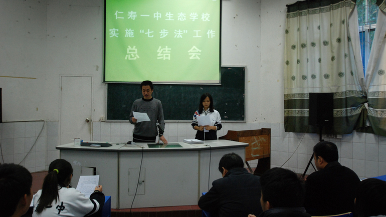 副校长、学校生态委员会副主任高世金作了仁寿一中一年来实施“生态学校七步法”工作总结,宣布按时向国家环保部宣传教育中心递交申请国际生态学校绿旗荣誉的所有申报材料。