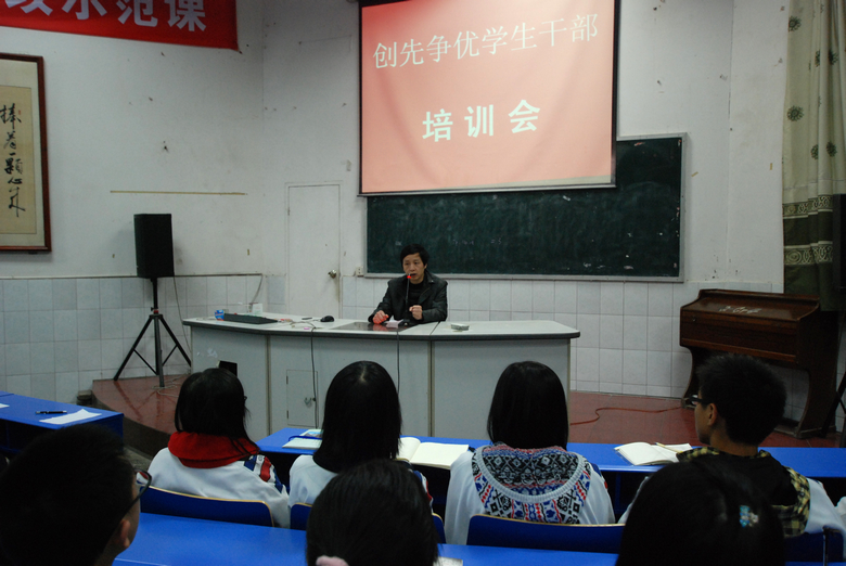 学校政教处、团委以“创先争优”为契机,组织了一次学生会、团委会干部培训会。会议由政教处高亚敏主任主持并强调会议纪律。学生干部培训分为两个方面:由团委书记何婷主讲《学生干部应该具备的素质》附讲话稿;最后由政教处代健副主任作总结。再次强调学生干部应树立服务意识,团队意识,奉献意识,责任意识等。此次培训会非常成功!