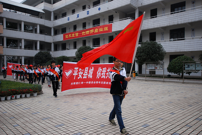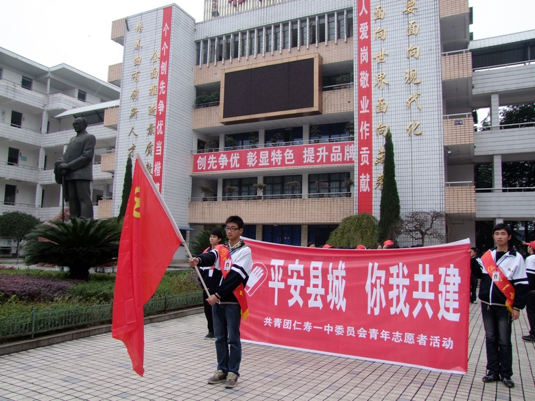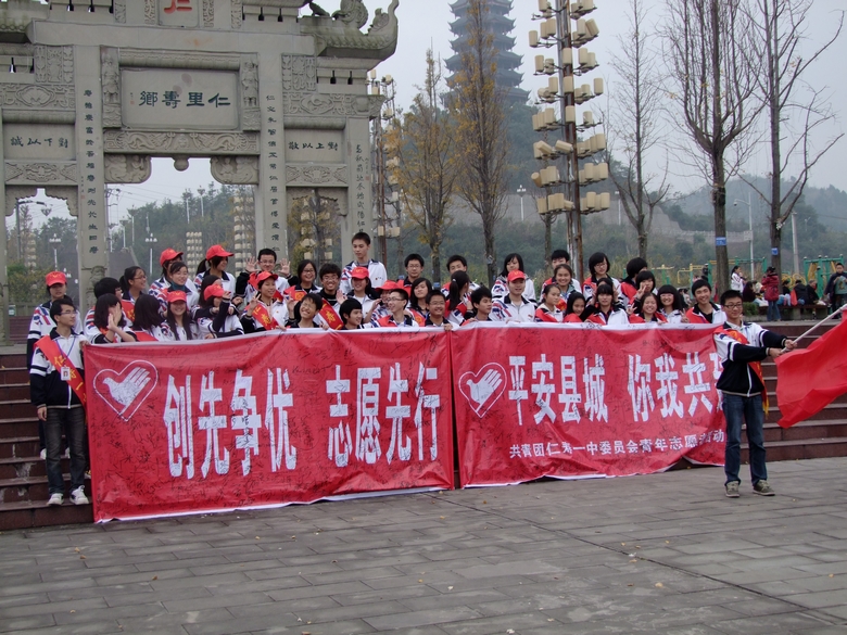 11月28日下午,由仁寿一中团委会、学生会成员组成的志愿者团体在天仁公园进行了近2个小时的公益宣传活动。
