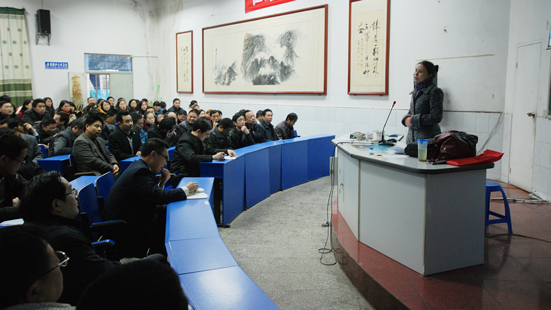 廖涛副教授首先与《教师文化自觉研究》课题组全体成员就科研论文的规范化写作及注意事项从理论和实际两个方面进行了交流。在高中部教职工大会上,以她自己撰写并发表在中文核心期刊的论文为范例,从文章题目拟定、作者、摘要的内容、关键词确定、文章主体结构、结语、参考文献、注释等方面发表了演讲。
