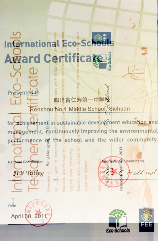 目前,全世界50多个国家和地区的4000余个地方政府、4万余所学校加入了国际生态学校网络,600余万师生参与了国际生态学校的创建活动。国际生态学校项目已经成为全球学校参与环境保护和可持续发展的最大的旗舰项目,被联合国教科文组织和联合国环境署充分肯定,并作为“联合国可持续发展教育十年计划”杰出范例。环保部宣教中心于2009年6月在我国启动国际生态学校项目,旨在引导更多的学校参与到国际生态学校创建中,鼓励青少年参与环保行动。仁寿一中在巩固“国家级绿色学校”、“四川省文明单位”等一系列创建成果的基础上,学校生态委员会组织师生员工共同参与,严格按照“七步法”,积极进行国际生态学校的创建活动。