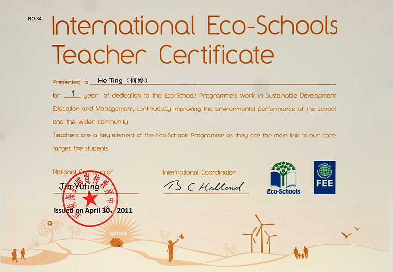 2月12日,环保部宣教中心发出《关于授予2010年度国际生态学校绿旗荣誉的通知》,决定向北京市育英学校等47所学校授予国际生态学校绿旗荣誉。四川省有仁寿一中、富顺县华英实验学校荣获此殊荣。