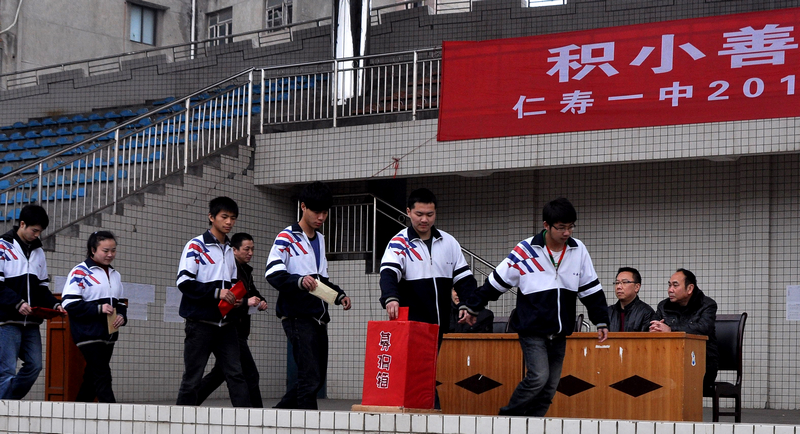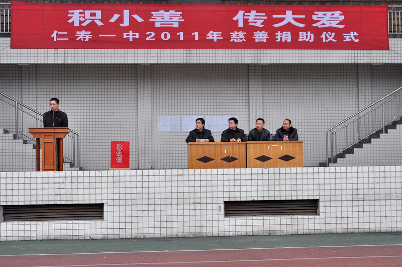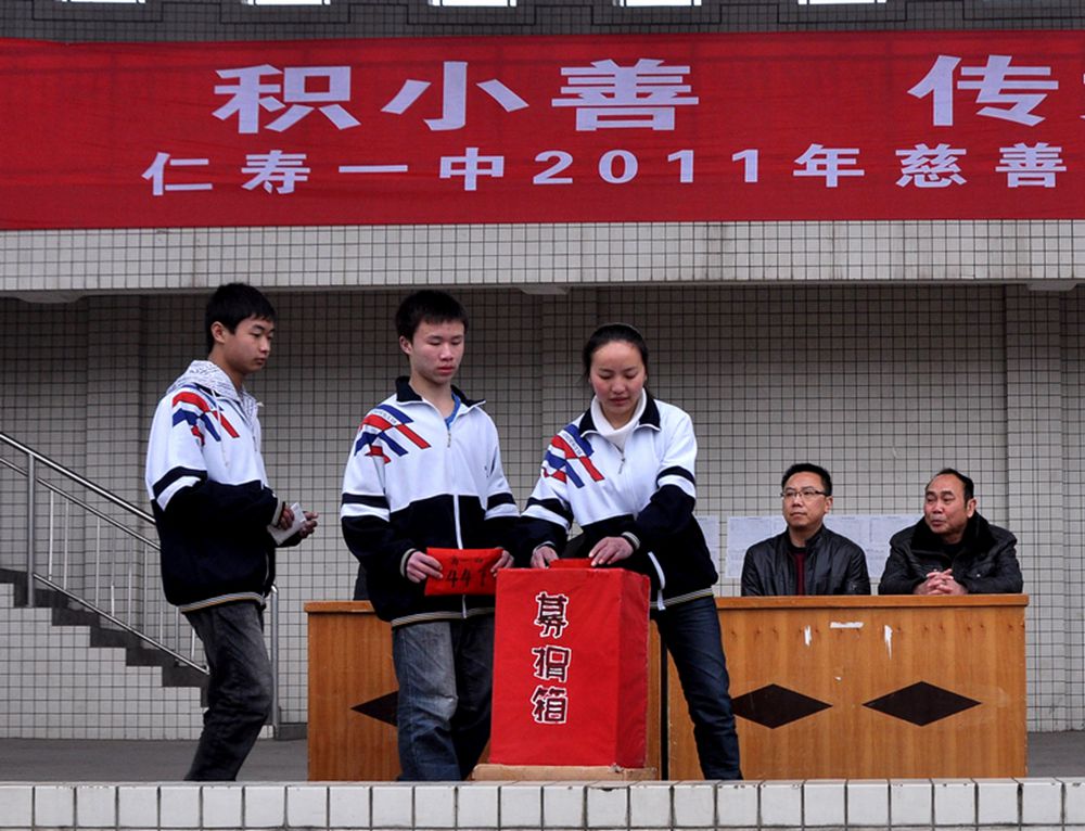 3月4日,春暖花开,仁寿一中校园里涌动着浓浓春的气息,更传达着爱爱的暖意,这里正在举行一场“积小善 传大爱”为题的慈善捐助仪式。仁寿一中针对由县教育局向全县中小学倡导的,一年一次的“3月5日爱心捐助日”活动,今天在这里展开,全体教职工和学生一起参加了此次捐助活动。