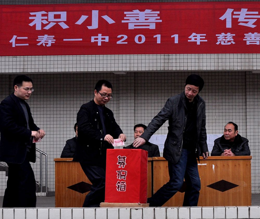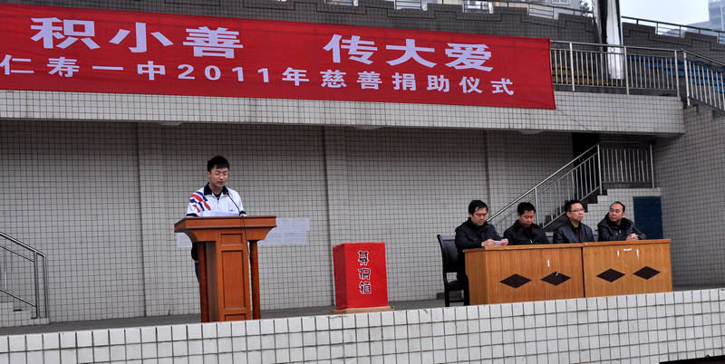 捐助活动由仁寿一中副校长高世金主持。活动首先由仁寿一中党总支书记、校长方良元讲话;古人荀子说:积善成德,而神明自得,圣心备焉。三国志中刘备也说:勿以恶小而为之,勿与善小而不为。我们积小善、存大德。学会爱,奉献爱,还要传递爱。让“向学好善”代代相传。学生代表校团委书记李斯琦宣读了倡议书;众人拾柴火焰高,爱心捐助汇暖流!能力不分大小,善举不分先后,您所捐助的每一分钱都饱含着无价的爱心,都将化成一屡屡阳光,给需要的人以无限的温暖...