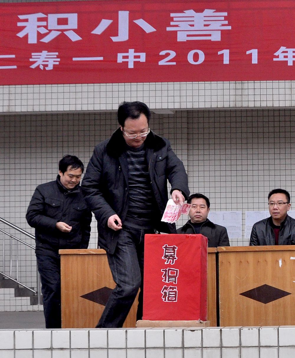 最后捐款活动开始,从领导到师生都积极踊跃的上台,把捐款投进捐助箱,把爱的暖流汇成一股股甘泉,给大家带来无穷的力量。