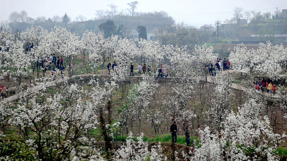 沐浴着春日的暖阳,在蓝天白云之下,畅游在满眼梨花的世界里,让人感受到的是一种飘逸的享受,仿佛自己也化作一朵梨花,在春天里竞相开放,在微风中展露身姿。梨花白且繁华,“白”显得清纯可人,“繁”显得活泼可爱在乌黑如铁的树干一簇簇雪白的梨花来。在白与黑的对比中,梨花永远是如此的清新淡雅,洁白如玉,不争春光,却在无声中展露着春天的消息。有春天就有希望,而这一树树洁白的梨花在孕育着丰盈的果实,更孕育着梨乡人的希望。