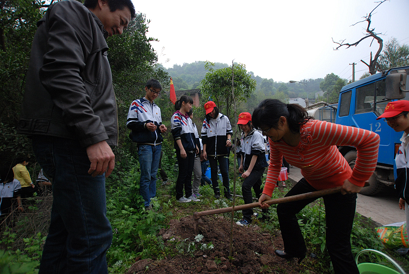 2011年4月15日早上,我校高一、二年级各班团支部书记、团委会学生干部及志愿者教师一行60人在学校团委、政教处、保卫科的带领下参加了由县委宣传部组织的“美化家乡、绿化家园”植树活动。