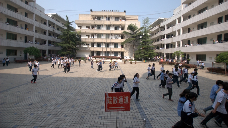 4月27日上午10点,班主任和疏散指挥员各就各位。当警报铃响起后,各班班主任立即指导学生有秩序地迅速撤离。到达目的地,各班马上清点人数,报告指挥部。
