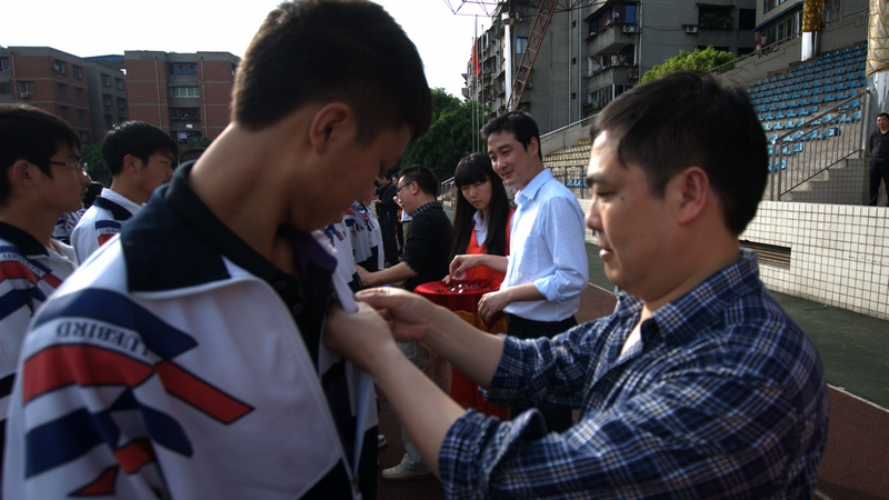 在《飞得更高》高亢歌声中,高二年级年满十八岁的同学们朝气蓬勃地跑过“成人门”,与会领导、家长代表、教师代表为他们佩戴上了成人徽章,标志着他们从这一刻起真正跨入了成年人行列!接着他们兴奋地放飞了理想气球。