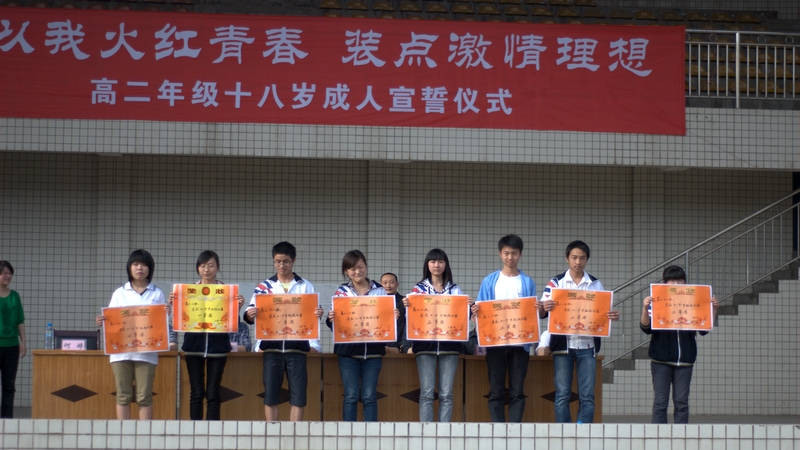 5月4日,我校2011届高二学生成人仪式在学校体育场隆重举行。团县委郭书记、杨建清副校长、高世金副校长及校其他十多位中层领导、学生家长代表和高一、二年级全体师生参加了大会。