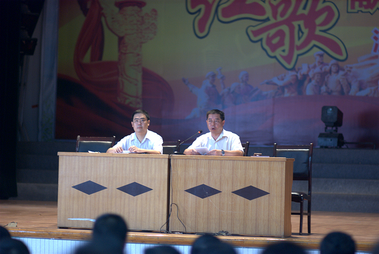 仁寿一中校长 方良元讲话(右),会议主持 副校长 高世金(左)