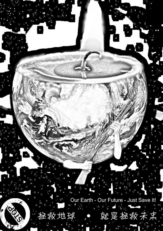 仁寿一中生态委员会积极组织全校学生参加汇丰气候变化生态规章海报国际竞赛等活动。曾建刚同学创作了《常温半小时之后》,他对主题说明是,温室效应的原理和危害,警示人类已经到了“慢性自杀”的最后死亡边缘。剪刀的两股力量在斗争,象征冰川和森林的冰块和一片柔弱的树叶正在承受另外一股强大的力量,它们是现代工业、尾气排放、过度放牧、人口增长、滥伐森林和城市化等等,而它们都是人类无休止的欲望所致。而这些都是导致气温升高的直接罪魁,打破了这两种力量原本的平衡,并且是一种严重的剪刀差,这让处于刀尖原本宏大的地球显得是如此的渺小和脆弱,常温半小时之后,人类赖以生存的空间地球就将破灭,而她死在人类之手!刘燕同学对《拯救地球,就是拯救未来》主题说明是,和平与发展是当今世界的两大主题,所设计的好报呈现的当今社会与这两大主题背道而驰的现状,因为气候变化,地球恰似燃烧的蜡烛,为了短暂的光明走向了永久的黑暗,社会还谈何发展?手持枪支的地球象征此时面临生存问题还执迷不悟的处于战争状态的人类,还谈什么和平?深刻揭示了战争与气候、人类与环境的关系。如今愈演愈烈的战争,不禁让人们们思考战争中所使用的武器在使用甚至是在研发过程中所产生的大量碳的排放、核污染。人类的所作所为无疑是慢性自杀,一步一步让人类走向灭亡。它警示着我们:拯救地球,就是拯救未来!