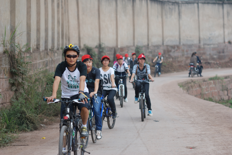星期一的下午,我们全班同学在老师的带领下,浩浩荡荡从学校出发,进行外出锻炼活动。这次活动是学校为了发展我们班的综合素质开展的。在学习之余,放松一下身心。午自习之后,十几个同学骑着自行车,带着整齐划一的“小红帽”在学校门口集合。首先由摄影家谭大叔帮我们照了一张非常艺术的集体照,然后老师讲了几点出游的注意事项,我们的队伍就踏上了征程。