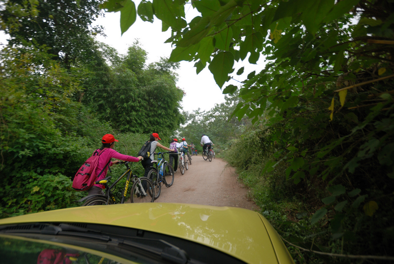 一路上,众人骑着车,一边欣赏着大自然美丽的景色,一边交流这自己的感受。从城郊到郊外时,我们由一条乡间小路骑进,一路上有连绵的青山,为我们引路,美丽幽深的湖泊伴着我们,游览在一片又一片的庄稼地里听取蛙声一片。