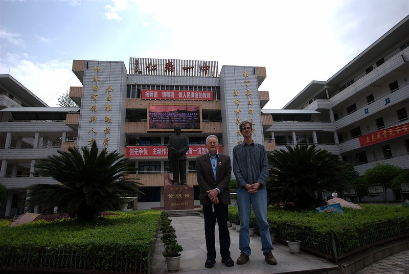 附记:4月24日,著名加拿大友好人士云从龙的儿子云达忠和侄子(云达乐的儿子),来仁寿一中“回家”,走访了仁寿一中,80岁的云达忠,尽管已时隔多年,但他们仍旧清楚地记得在这里生活的点点滴滴,比如谈起他当年好奇去看做“芝麻糕”(仁寿特产)的情景,风趣、幽默,时不时地冒出几句带有四川口音的土话,让人开怀。