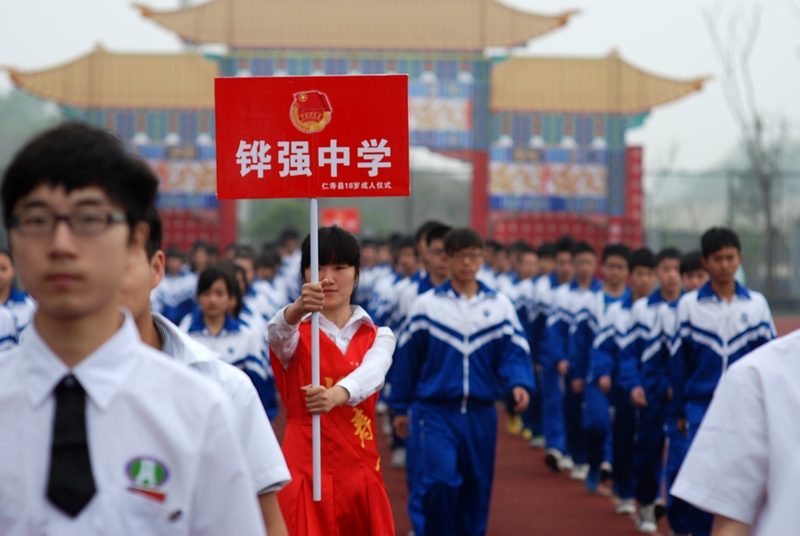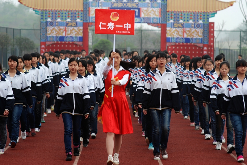 上午9点,仁寿一中城北校区体育场早已竖起了节日的气球,五彩的鲜花环绕着主席台,庄严的成人门伫立在成人跑道上,等待着成人学生们神圣的一跨。同学们穿着整齐的校服,意气风发。随着主持人宣布活动开始,成人仪式正式拉开了序幕。首先是古代加冠礼表演,由四名学生和老师着古代汉服向我们展示了古代成人礼的完整过程。成人礼起源于周代,在礼仪当天受礼者须向孔子像祭拜,行加冠礼和及笄礼,然后长辈为其取字以示成年。同学们的精彩表演让我们领略了我国传统文化的博大精深。加冠礼毕,成人学生们等候在成人门后,伴随着音乐一起,同学们跨过成人门,冲过成人跑道,一路展现着18少年的蓬勃朝气与青春活力。随后,县委各领导为成人学生代表佩戴成人徽章并赠送成人礼物,以此表达他们对青年学子的殷殷期盼。紧接着,由仁寿一中学子组成的宣誓代表队在领导、老师、家长的见证下,面对国旗,许下了自己十八岁的铮铮誓言。宣誓礼毕,仁寿一中家长委员会代表吴晖先生致词并送上祝福,勉励学生自立自强,学会感恩,学会担当,积极进取,报效祖国,努力实现人生远大理想。活动接近尾声,同学们欢快的歌声响起,一曲歌唱祖国,表达了对祖国母亲的真挚祝福。活动结束,同学们竞相放飞手中的氢气球,五彩的气球在湛蓝的天空形成了一道绚丽的彩虹,18岁的青春不会单调,18岁的花季展示着青春的五彩缤纷,十八岁的太阳升起生命的光芒万丈;18岁的青春不会寂寞,18的翅膀翱翔着梦想与希望,十八岁的足迹延伸着追求与渴望。让我们衷心祝愿所有十八岁的成年学子奋发有为,追逐梦想。