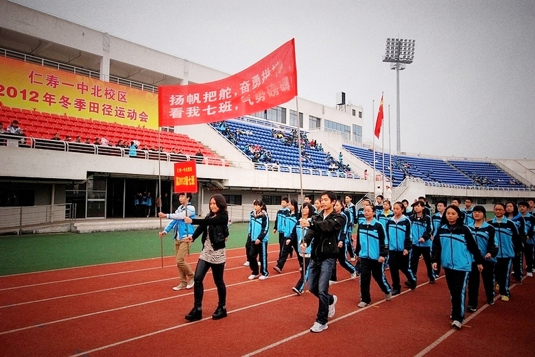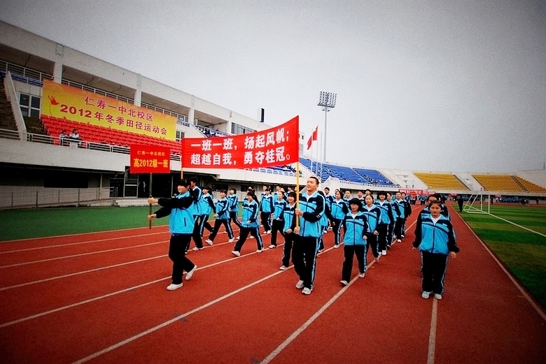 仁寿一中北校区2012年冬季田径运动会今天在仁寿一中北校区县体育场开幕,来自全校三个年级近三千名学生参加了开幕式。
