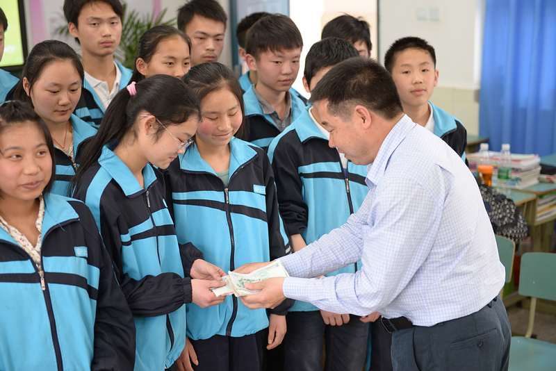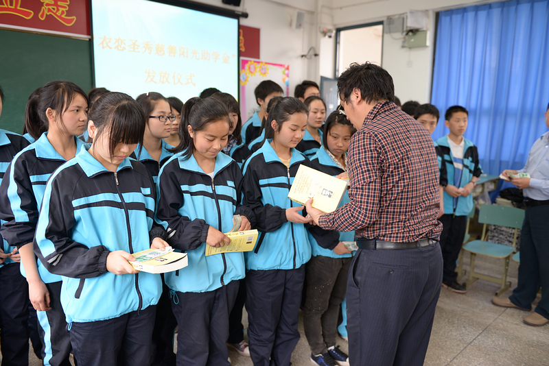 方良元校长在颁奖仪式上致辞,班主任言云光宣布了“衣恋”优秀学生助学金的获奖名单,到场的领导及老师分别为获奖同学颁发了奖金、书和储蓄卡。