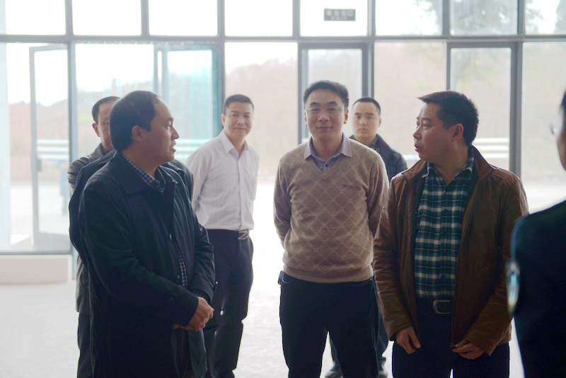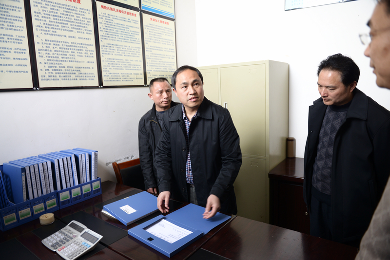县政协主席汪建章在视察食堂资料管理