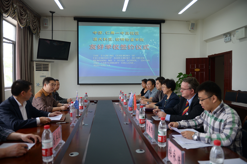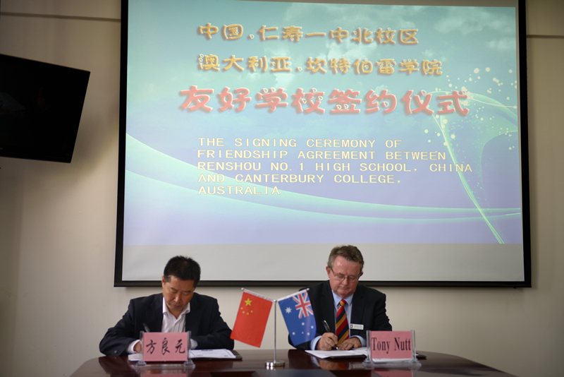 5月1日上午,澳大利亚昆士兰州坎特伯雷学院(Canterbury College)高中部院长东尼 纳特,履行承诺再次来到中国仁寿与仁寿一中北校区正式签订友好结对协议。