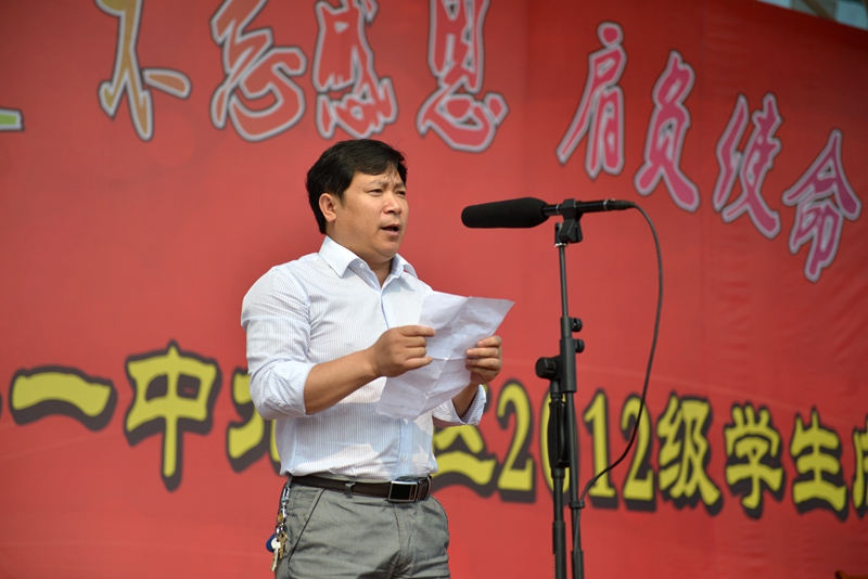 首先由仁寿一中北校区副校长高世金同志向同学们发表青春致辞,告诉同学们十八岁这段历程背后是新的责任与新的使命,只为了两年前共同的理想在一年后能够实现。其次,团县委副书记李勇同志向同学们提出殷切的希望和要求,为18岁的青春领航,让团旗在心中高高飘扬。接着,高二语文组的廖秀华老师代表全体教师献上对所有学生最真诚的祝福。然后,高二(3)班谢祥雨的父亲中岗九年义务制学校校长谢真志同志代表所有关心孩子们的父母讲述他们的心里话,带来所有家长的期望与祝福。最后,高二(3)班的郭金曲同学代表所有成人学生表达了内心的感恩与感动。