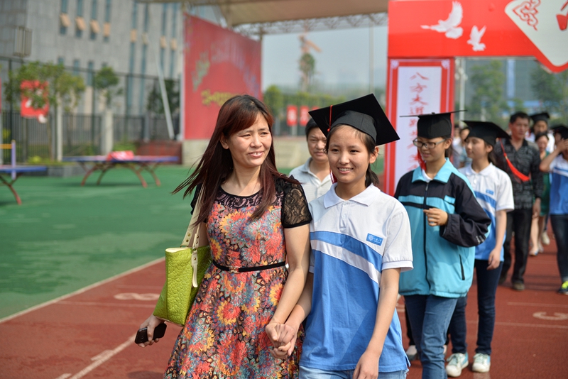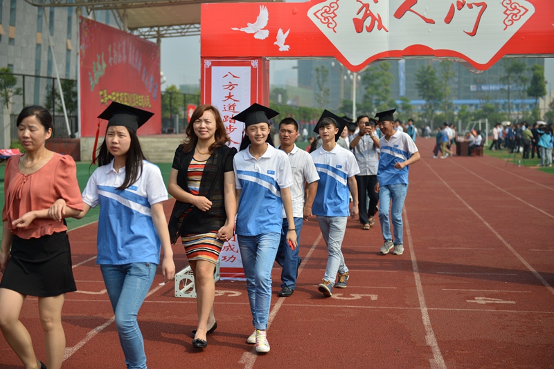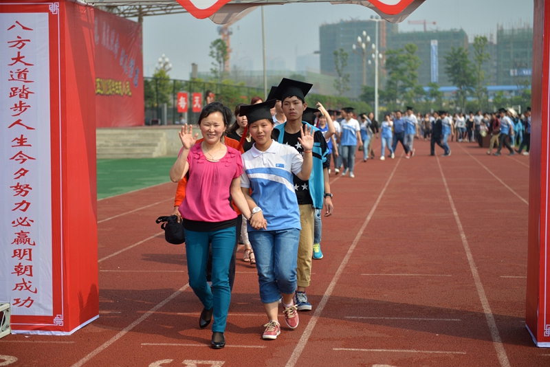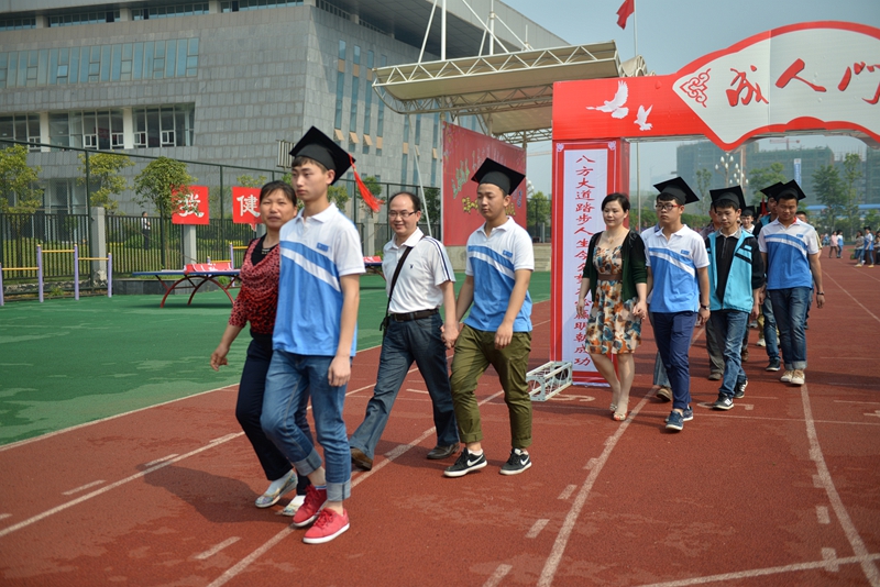 1、冠礼仪式: 《圣洁的时刻》包围全场,庄重神圣的时刻到来。第一步,由领导及家长为成人学生冠戴成人帽,接受家长最美好的祝福;第二步,学生退后一步,向师长们躬行拜谢礼,感谢师长的无私付出和全力培养;第三步,由家长牵着孩子的手,家长不在身边的,由老师牵着手,步入成人门,踏上成才路。
