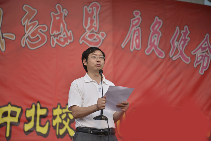 会上,教师代表、学生代表上台纷纷表态,以慷慨激昂的言辞向高三即将备考的学子们吹响奋战的号角。教务处主任陈新向同学们详细解读了2014年高考的相关程序,对学生的考前准备、心态调整、注意事项及考试技巧等方面进行了详细指导,希望同学们能树立必胜的信心、保持持续的细心、以一颗平常心迎接高考,并对全体考生提出了高考期间的具体要求。副校长叶志强上台代表学校表态,将进一步加大后勤管理力度,以最大的热忱来为高考学子们服好务,全程、全员、全方位做你们的坚强后盾。最后由校长方良元作了总结性发言,面对全体高三学生,他希望每一位学生都能在考前积极调整心态、排除一切干扰、科学备考,以饱满的热情迎接高考,以严谨的态度对待高考,轻松阳光迎考,安全平安迎考,为自己圆梦,为一中北校区再创佳绩!