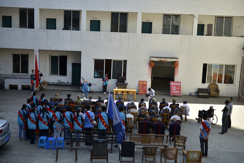 到达敬老院时,我们受到了敬老院张院长和在院老人的热烈欢迎。首先,邱书记代表学校表达了对老人的慰问,对团县委领导到来表示感谢。接着,团县委的董书记做了重要讲话,对我校学生干部提出了“两个期望”,对老人表达了“两个祝愿”。然后,文娱部的同学为老人们表演了精心准备的节目,张俊同学的舞蹈,彭萍、李杰、王玉波同学分别演唱了《母亲》、《小白杨》、《说句心里话》让老人们也不禁跟着哼唱起来,节目的最高潮当属王雅颖同学萨克斯演奏的《莫斯科郊外的晚上》,掌声一阵接一阵;在热烈的氛围中,团委会的学生干部为每一位老人分发学校的一点心意。节目表演完后,老人代表廖爷爷讲话,同学们陪着老人聊天,有为老人捶背的、有为老人唱歌的、有为老人剪指甲的等等,同学们用自己的方式传递了对老人的敬爱之情。最后,在邱书记的《走进新时代》的歌声中,结束了这次慰问活动。当我们离开敬老院的时候,老人们依依不舍的与我们挥手告别。