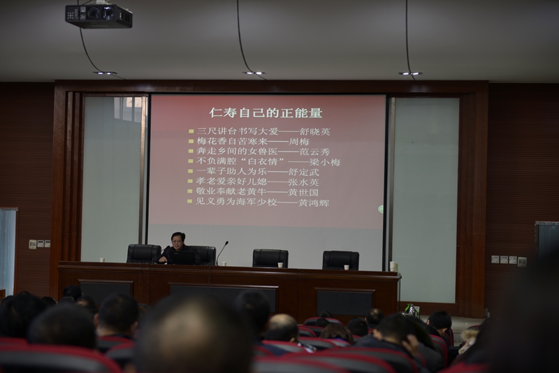 12月19日下午,仁寿一中北校区请来了中共仁寿县委党建办主任李翔以“培训和践行社会主义核心价值观”为主题的讲座开讲。学校全体教职工聆听了讲座。