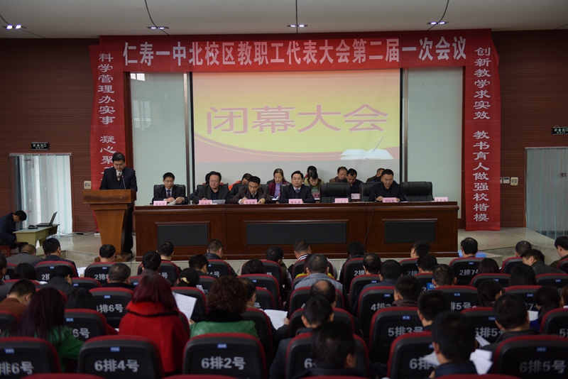 大会听取黄永建校长的工作报告,二是审议《仁寿一中北校区2015决算及2016年财务预算报告》,三是提出了《仁寿一中北校区教职工代表大会实施细则》(修订稿),四是审议《仁寿一中北校区第二届一次教代会提案征集情况报告》通过为期近一个月的寒假蕴壤在开学后分组讨论,修订后于3月2日大会进行了闭幕大会。