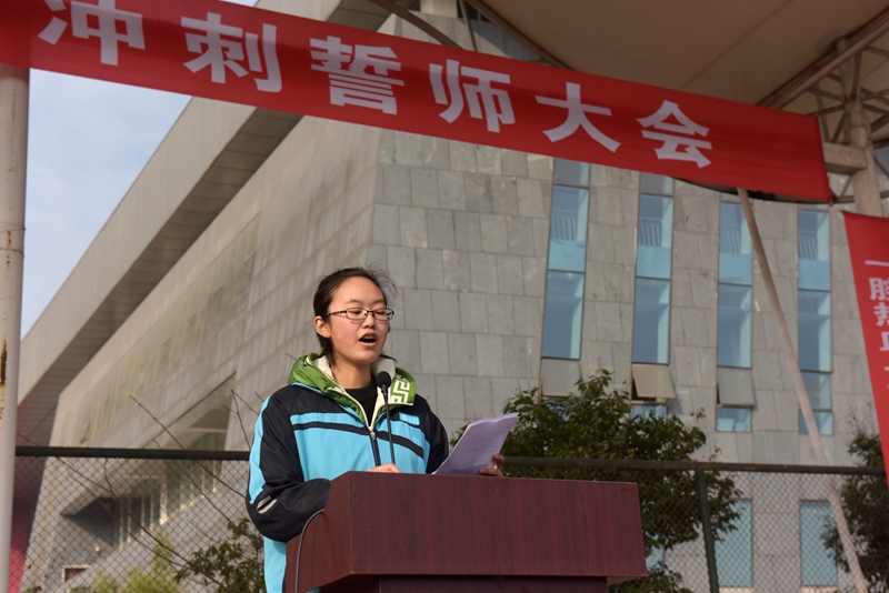高三全体师生参与了此次誓师大会,会议有六项议程:1、黄永建校长对高考冲刺100天做全面动员讲话;2、学生代表发言(高三6班 杨靓娴);3、教师代表讲话(徐颖);4、学生宣誓;5、教师宣誓;6、高三年纪主任高世金副校长对高三后期工作做指导和安排。