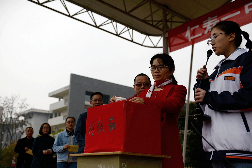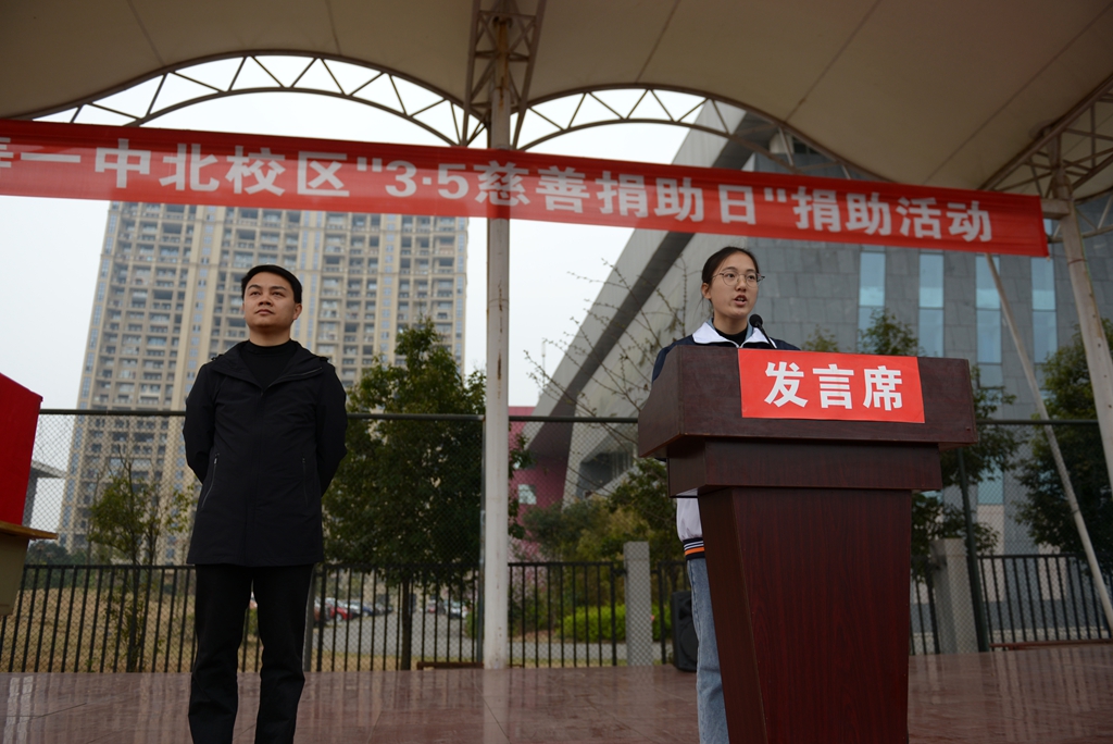 奉献爱心一直是我们仁寿一中北校区的优良传统。在今天,爱又一次成为我们学校的主旋律,全体师生又将这种高尚的道德情操发扬光大,你们就是传递爱的天使!“爱人者,人恒爱之”,“赠人玫瑰,手留余香”,我想大家此刻心里一定是幸福的,因为你们播种下了爱心的种子,受助对象就会收获到生命的春天!同学们,当看到你们双手捧着自己攒下的零花钱、压岁钱,毫不犹豫的投入捐款箱的时候,我为大家感到骄傲和自豪!这真正体现了一中北校区这个大家庭的温暖、关怀和幸福,更体现了一中北校区人团结一心、共克艰难的勇敢精神,也证明了每一个一中北校区人关爱他人、担当责任和无私奉献的精神!
