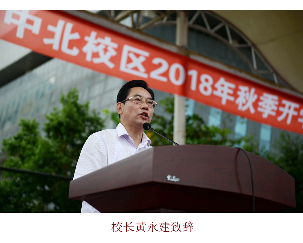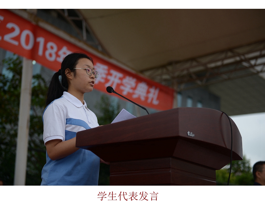 仁寿一中北校区校长黄永建走上发言席代表学校致辞;欢迎高一新生以及新教师的到来,并回望过去一年学校在各个方面取得的重大成绩,特别是2018高考的辉煌。希望全体师生员工,再接再厉,团结一致,继往开来。教师代表、学生代表纷纷上台,表初心、表信心、表决心,努力热情迎接新学年的挑战。
