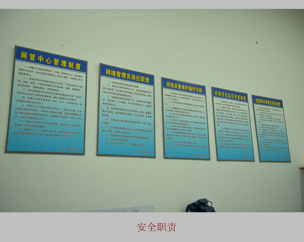 1、学校网站按照国家网信办文件和办公室印制的《工作制度汇编》等相关文件,结合网管中心工作实际,制定了工作细则。通过了“四川省网络安全执法检查”及公安安全认证,网站内容的发布全部由专人管理审核完成。及时利用公共平台发布学校热点新闻活动内容。学校校园内目前已经实现wifi上网,教师无论在办公室,操场上都可以利用移动电子设备。为了维护网络安全稳定的运行,学校实名上网制度,对每一个端口实行固定IP地址,实名上网不是为了监控教师,而是为了维护网络的安全、稳定运行,共同维护好我们的网络。